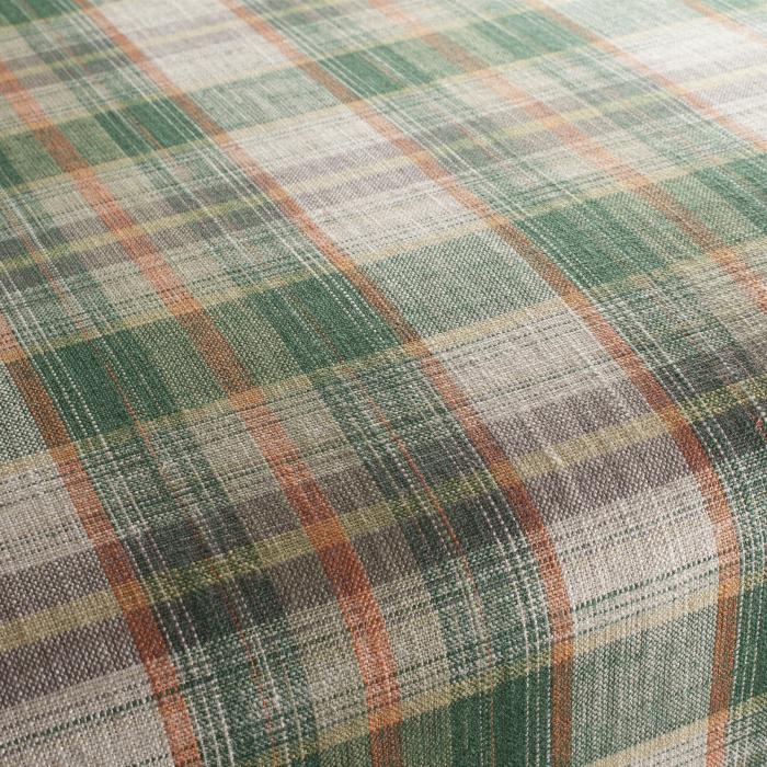Der Polsterstoff von Jab Anstoetz besteht aus den Naturfasern Viskose und Leinen, zusätzlich sorgt das große Karomuster für eine behagliche Atmosphäre.